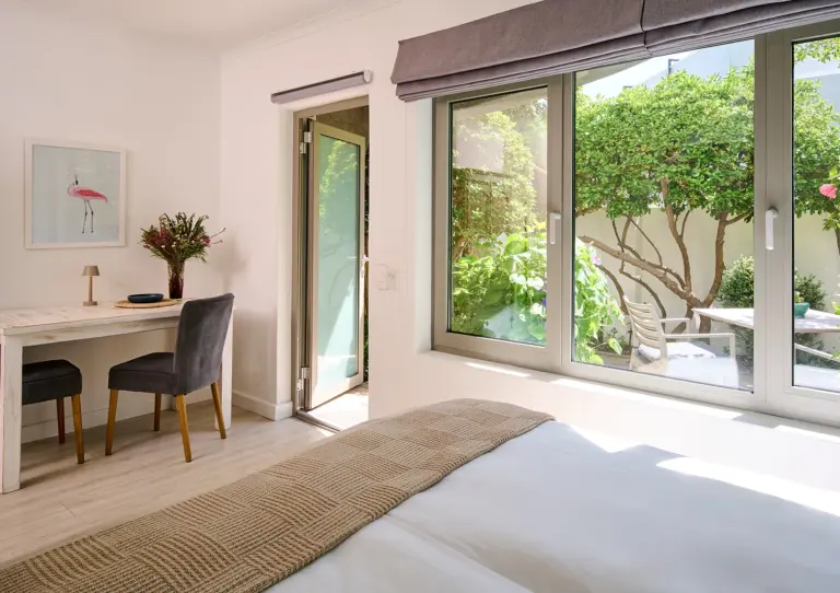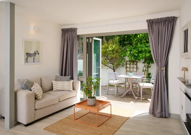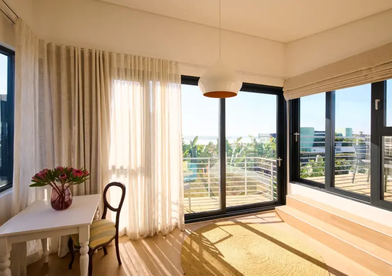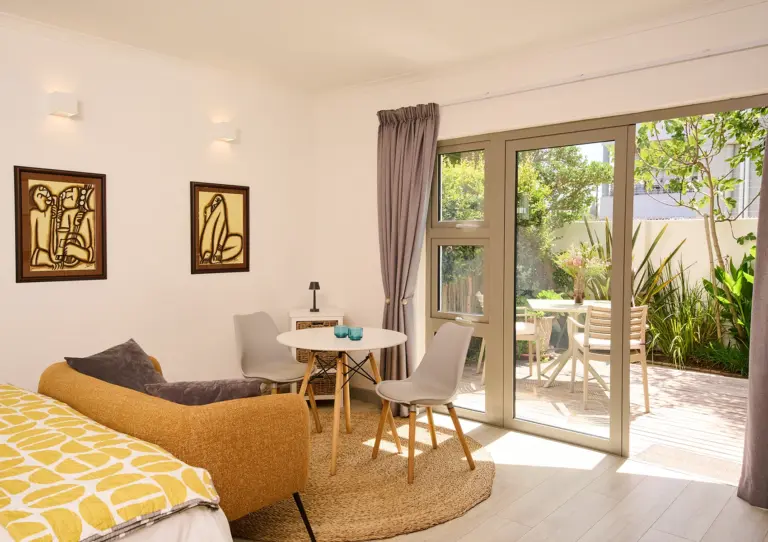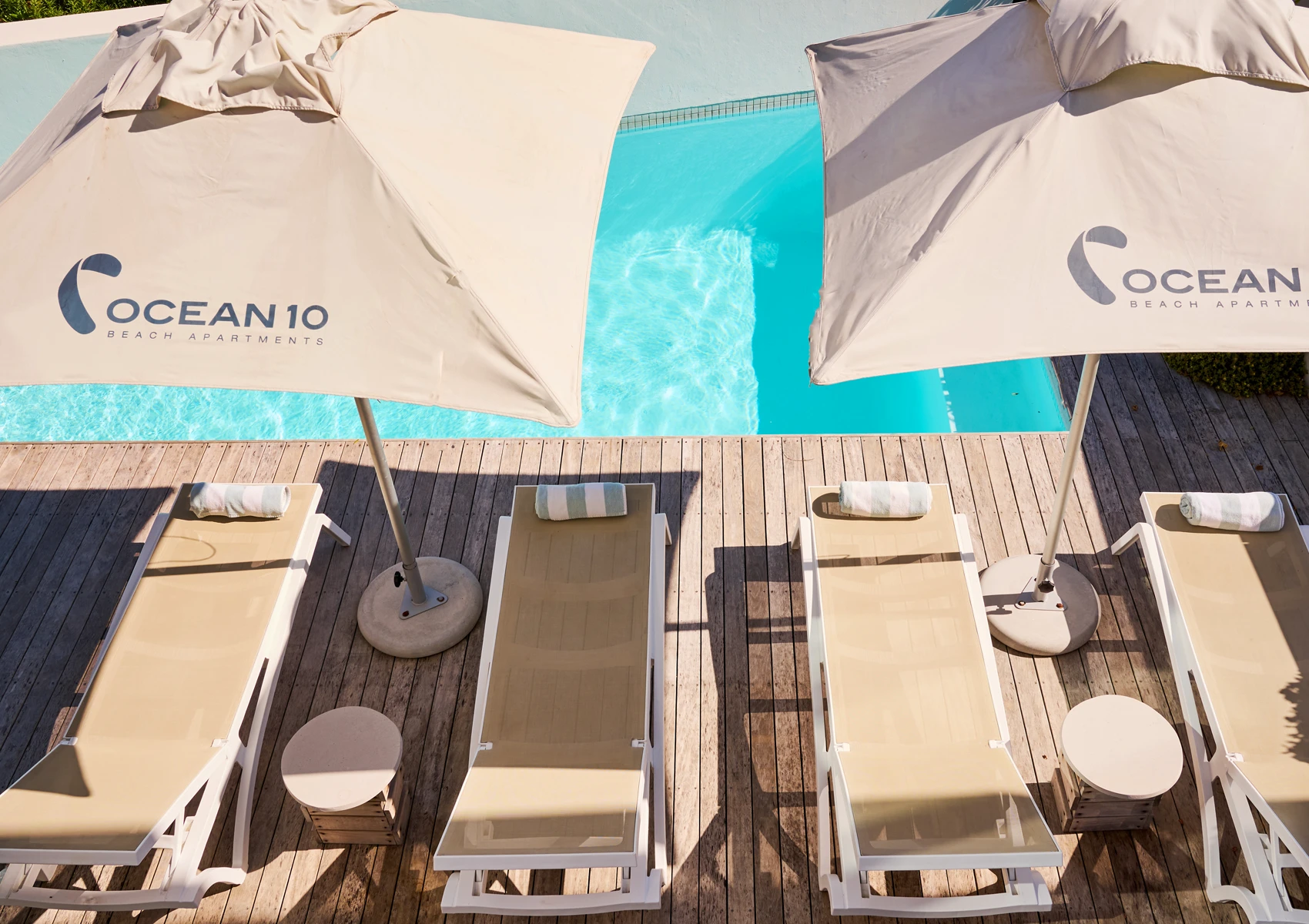 Das Ocean10 Gästehaus verfügt über 6 schön gestaltete Apartments mit voll ausgestatteten Küchen und großzügig geschnittenen Badezimmern zur Selbstverpflegung. Alle Apartments haben Terrassen oder Balkone mit Holzdeck – entweder mit Blick auf das Meer und den Tafelberg oder den Garten. Überall im Haus kann man das sanfte Geräusch der Brandung hören. Das Sonnendeck am Salzwasserpool bietet einen Blick auf das Meer und den Tafelberg. Auf der Rückseite des Hauses befindet sich ein schön angelegter, kleiner Garten mit einer Außendusche (warmes und kaltes Wasser) – perfekt um nach dem Baden oder Surfen zu entspannen. Das Gästehaus liegt nur 30 Meter entfernt vom Strand und Parkplatz.